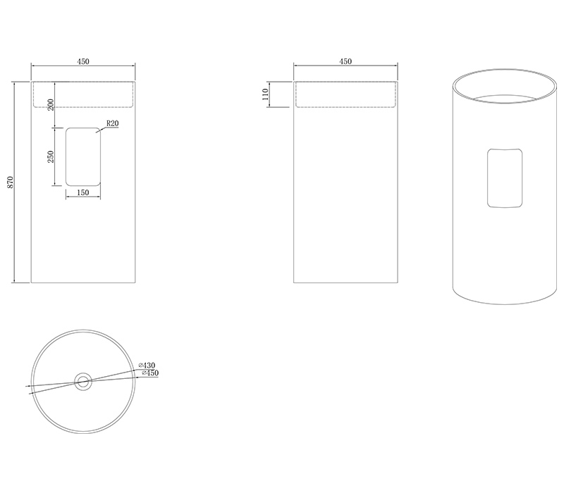 Отдельностоящая напольная раковина UNI-FLOW ЦИЛИНДРО / CILINDRO FS504-450 Matt White