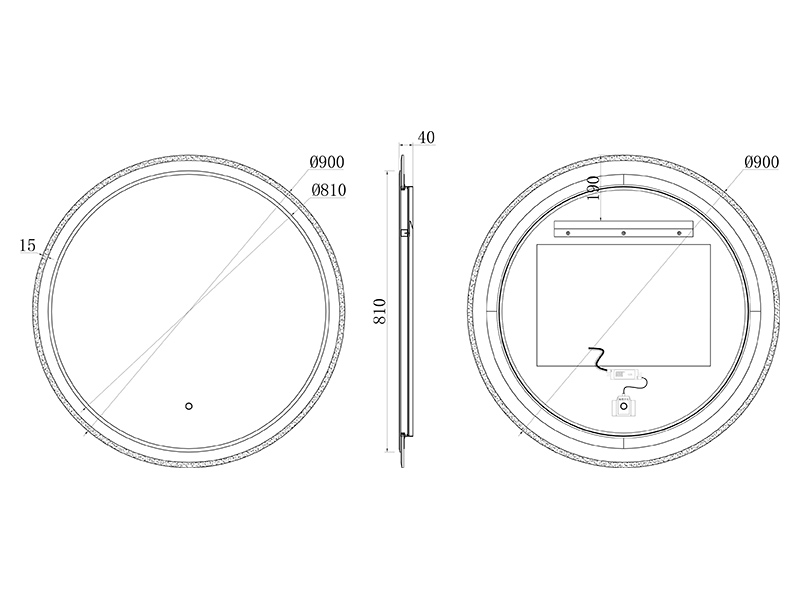 - Сенсорная система управления, которая позволяет сделать выбор цветовой температуры светодиодной подсветки зеркала: 2700K (теплый свет), 4000К (нейтральный свет), 6400K (холодный свет).